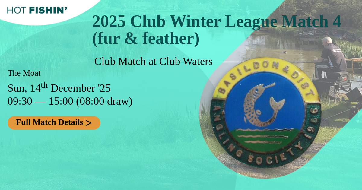 Hot Fishin' Points is a competition where the results of any match you fish receives points depending on where you rank. Prizes are won for the most points accumulated, from your best 10 matches, over the 13-week season.