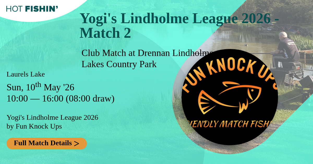 Hot Fishin' Points is a competition where the results of any match you fish receives points depending on where you rank. Prizes are won for the most points accumulated, from your best 10 matches, over the 13-week season.