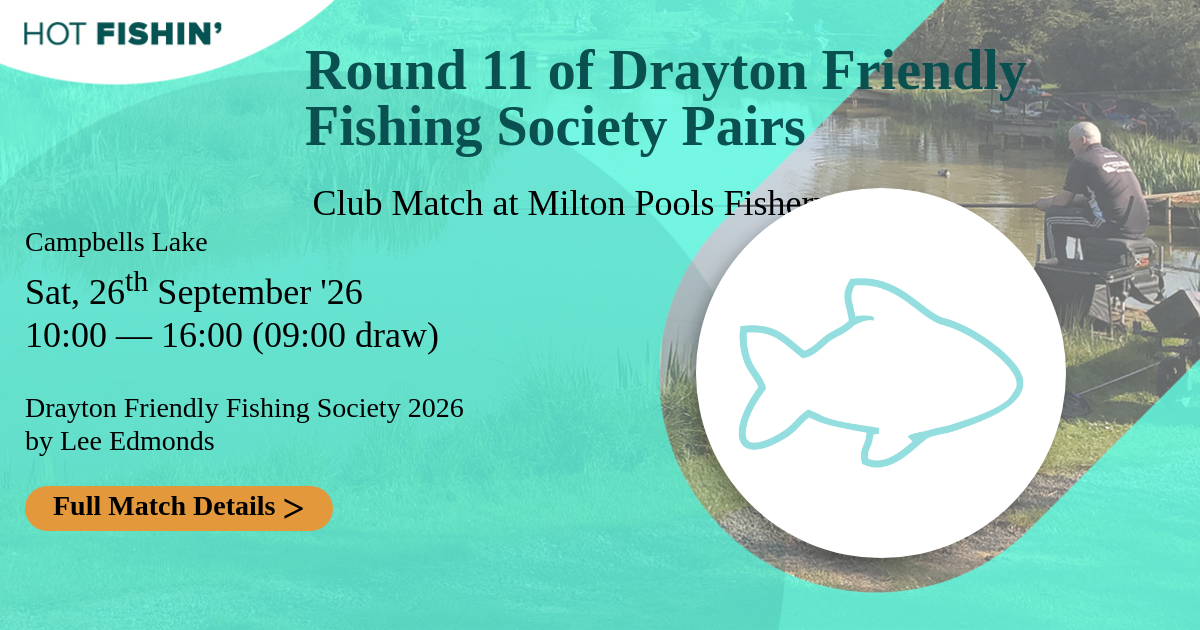 Hot Fishin' Points is a competition where the results of any match you fish receives points depending on where you rank. Prizes are won for the most points accumulated, from your best 10 matches, over the 13-week season.