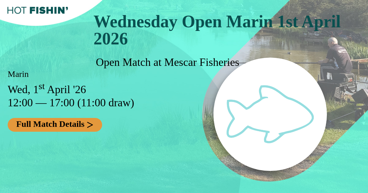 Hot Fishin' Points is a competition where the results of any match you fish receives points depending on where you rank. Prizes are won for the most points accumulated, from your best 10 matches, over the 13-week season.