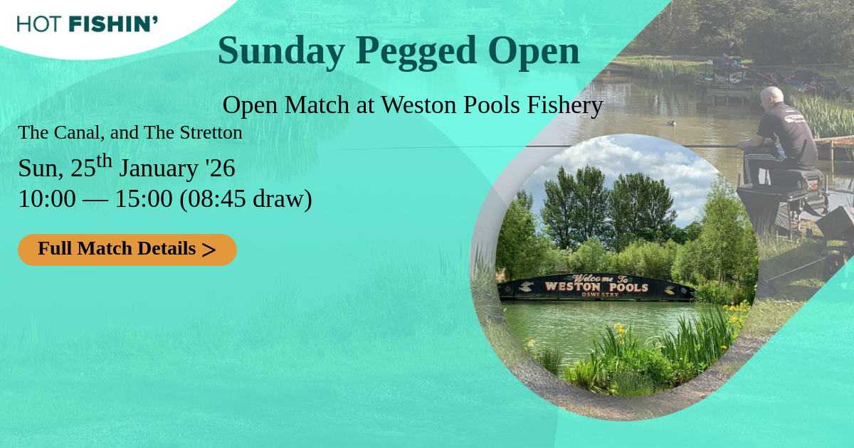 Hot Fishin' Points  is a competition where the results of any match you fish receives points depending on where you rank. Prizes are won for the most points accumulated, from your best 10 matches, over the 13-week season.