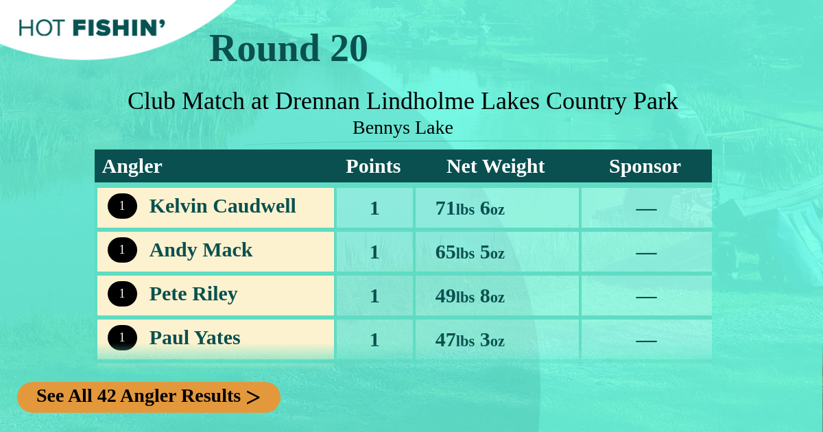 Check your performance in this 'Just For Fun' season of the tournament. Your best 10 results over the 13-week season will be used to determine the UK's top anglers!