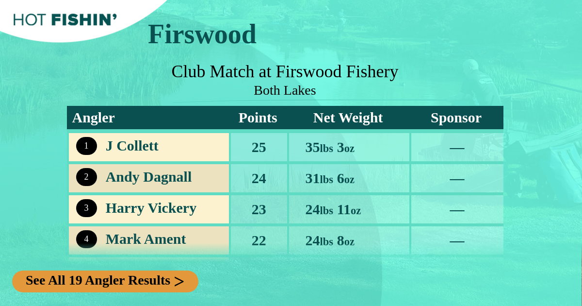 | Angler | Net Weight | Section | Peg | Attendance | Sponsor |