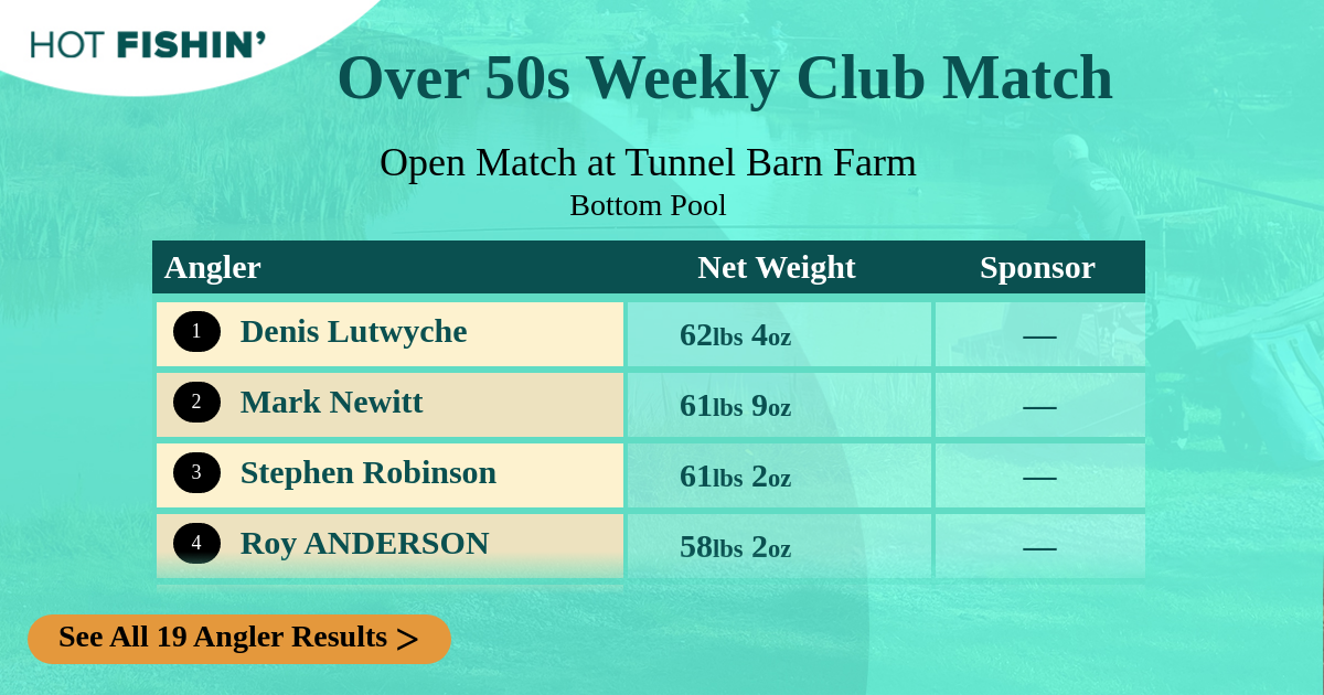 | Angler | Net Weight | Section | Peg | Sponsor | |