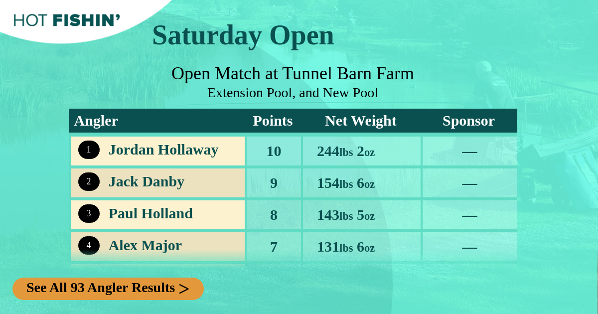 Hot Fishin' Points is a competition where the results of any match you fish receives points depending on where you rank. Prizes are won for the most points accumulated, from your best 10 matches, over the 13-week season.