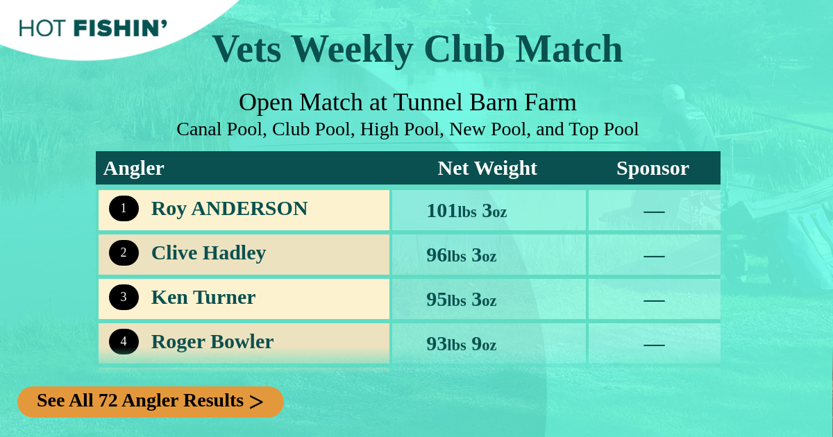 | Club Pool | Net Weight | Section | Peg | Sponsor | |