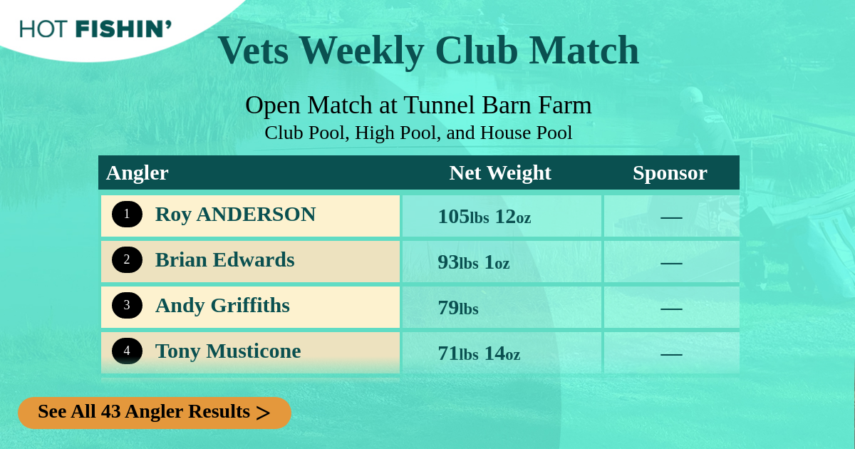 43 Vic Fulford6P5K3 | 6.095kg13lbs 7oz | High Pool | F | 19 | — |