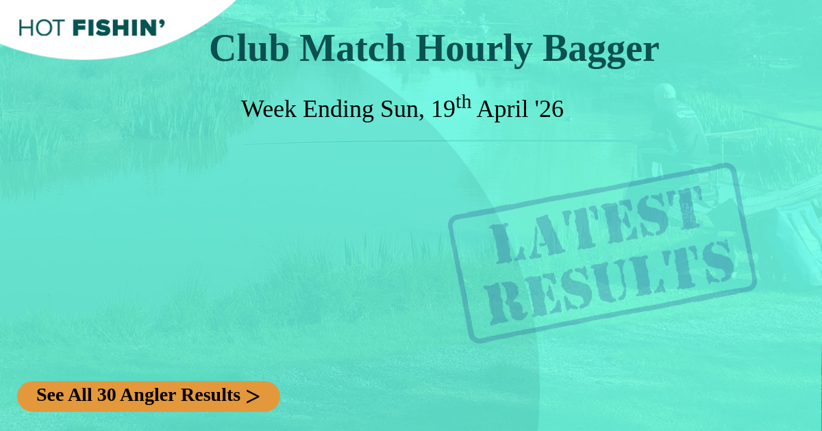 95 Dan HocksIV6N1 | Join In | 2.419kg5lbs 5oz 5dr | 14.515kg32lbs | Carier Angling Club | 19/04/2026 | ![]() | 2026 Club League Match 7 | Club Match | Coarse | 6hrs | 14 | Colemans cottage fishery | Wood | Commercial Water | A | 22 | — |